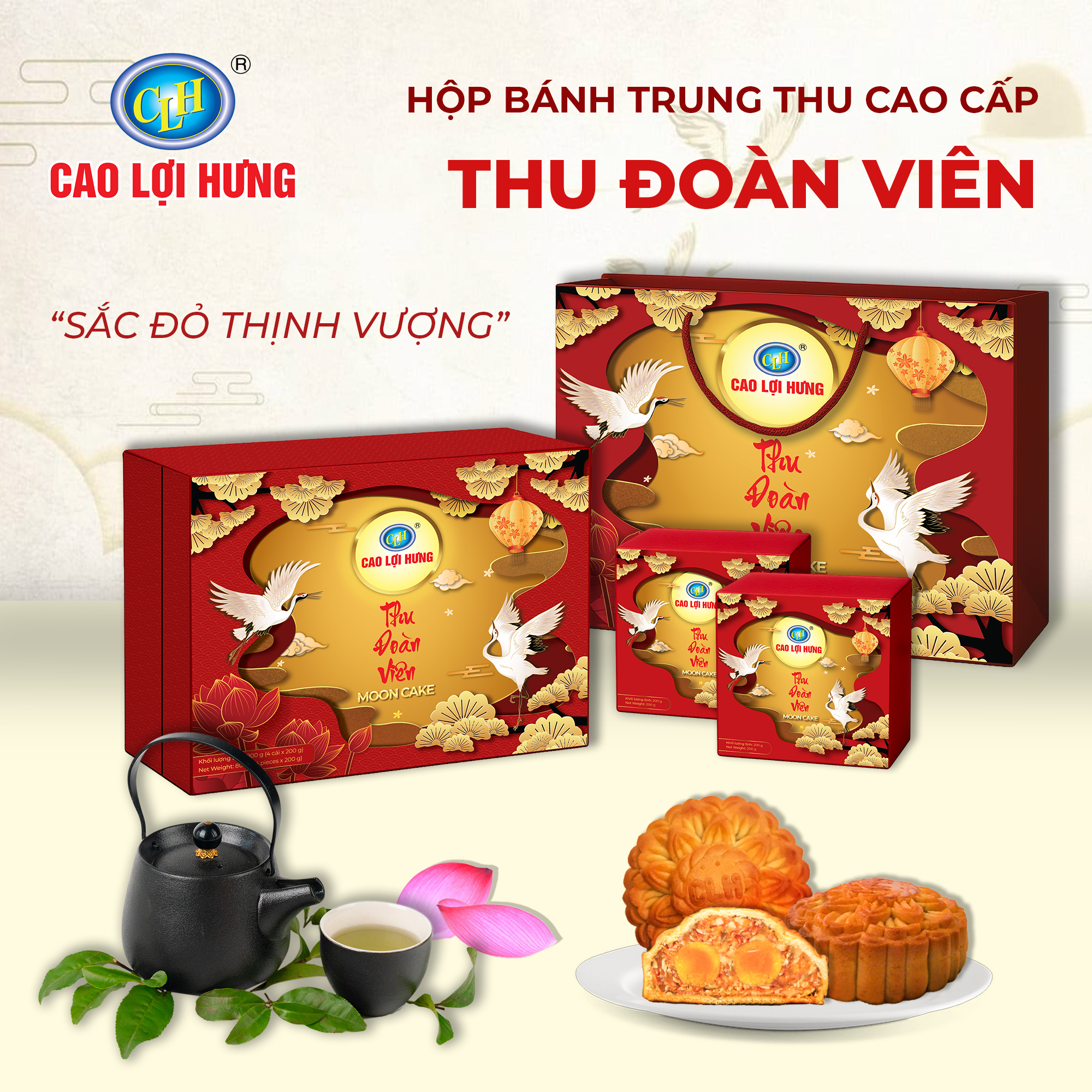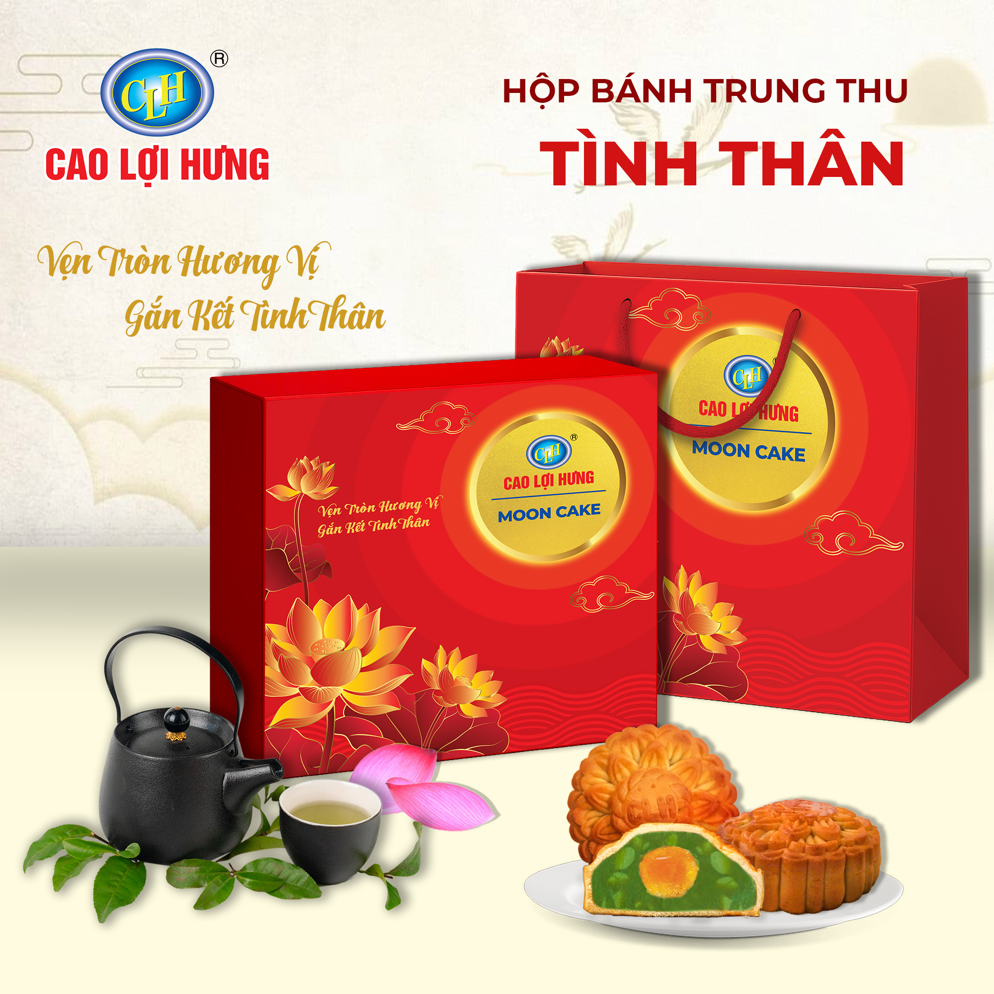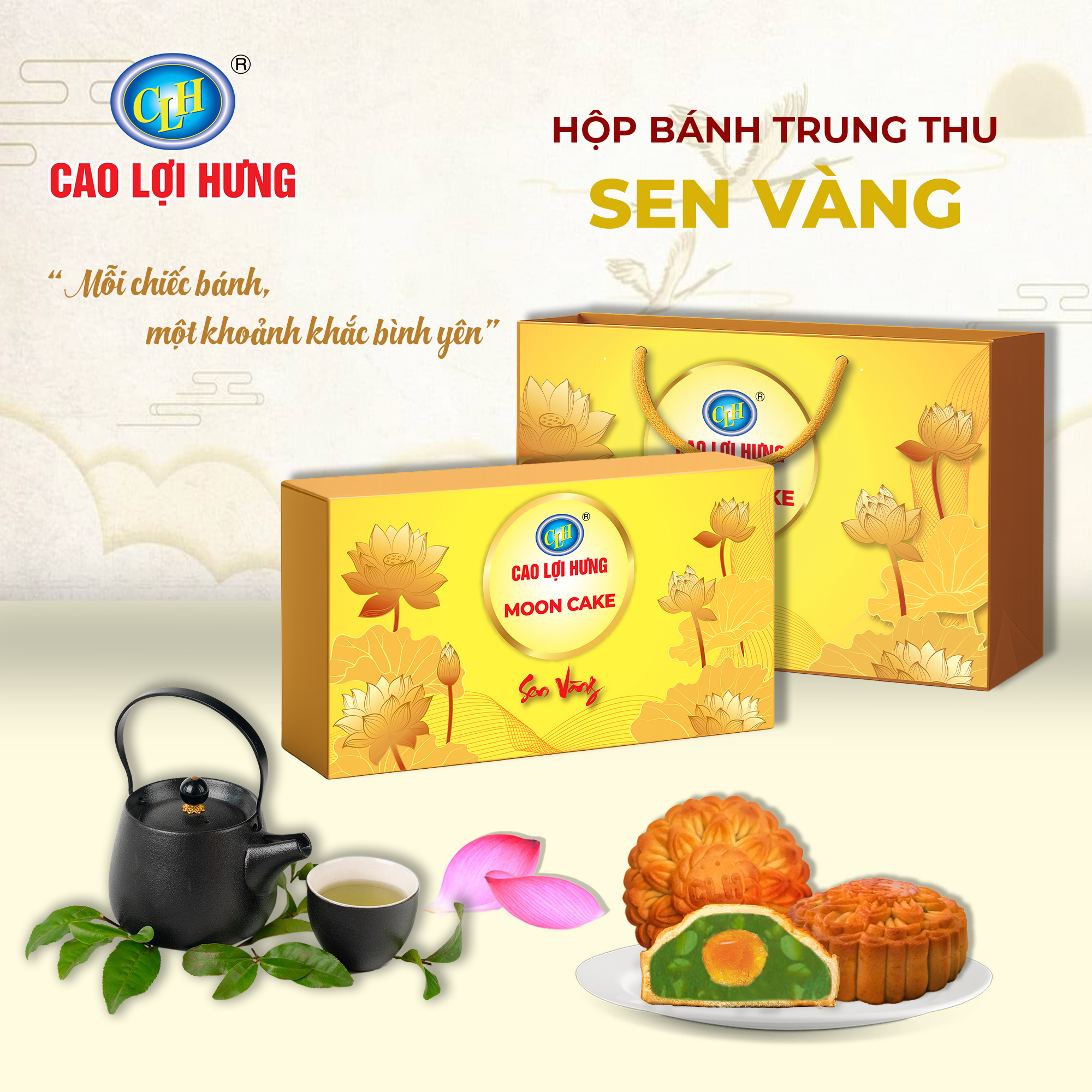 Mỗi mùa Trung Thu là dịp để quây quần bên gia đình và sẻ chia yêu thương. Năm nay, Cao Lợi Hưng tự hào giới thiệu bộ sản phẩm Hộp bánh trung thu cao cấp Kim Nguyệt Đoàn Viên, được thiết kế tinh tế, hương vị phong phú, thích hợp làm quà biếu trung thu sang trọng dành cho đối tác, khách hàng và người thân.